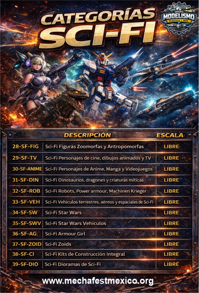 | 13-GU-NG | Gunplas NO GRADE y Mega Size Participan todos los modelos de cualquier universo, pintados y/o modificados con o sin partes extra. | Libre |