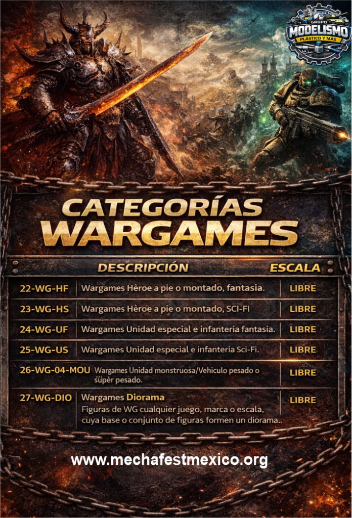 | 26-WG-04-MOU | Wargames Unidad monstruosa/Vehículo pesado o súper pesado. | Libre |